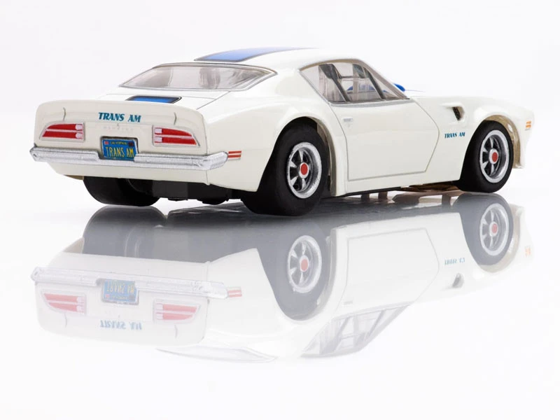 This is the AFX 1970 Pontiac Firebird Trans Am White/Blue Mega G+ HO Slot Car