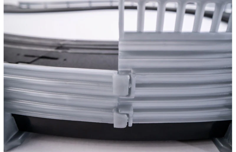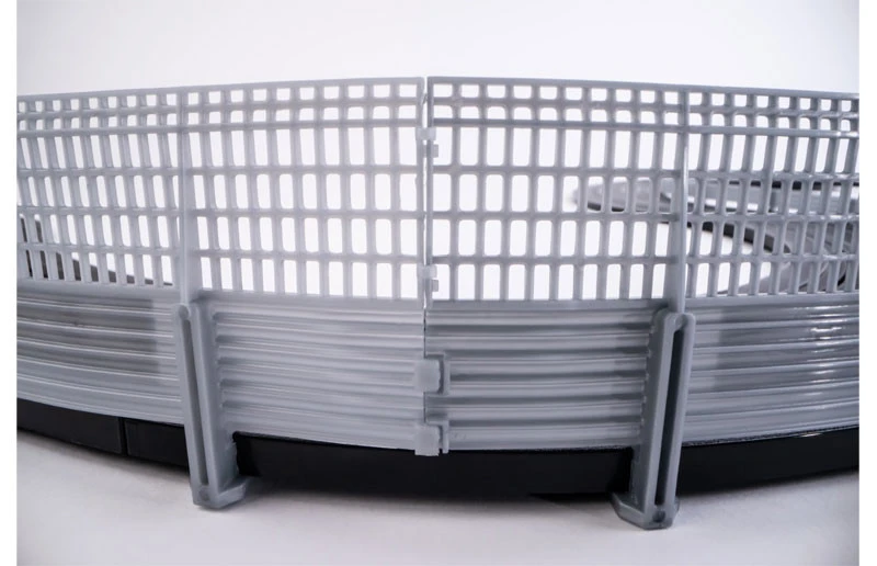 The AFX Catch Fence is sturdy enough to withstand massive crashes and flexible enough to avoid damaging your car. Its intricate design is strong yet bendable. Shape it to any curve in your track layout for secure, reliable connections. Small, discreet notches hook the sections of fence together seamlessly, detaching with ease. Decorate your Catch Fence with the AFX colors and connect to the AFX Armco Barriers (sold separately) for ultimate realism.