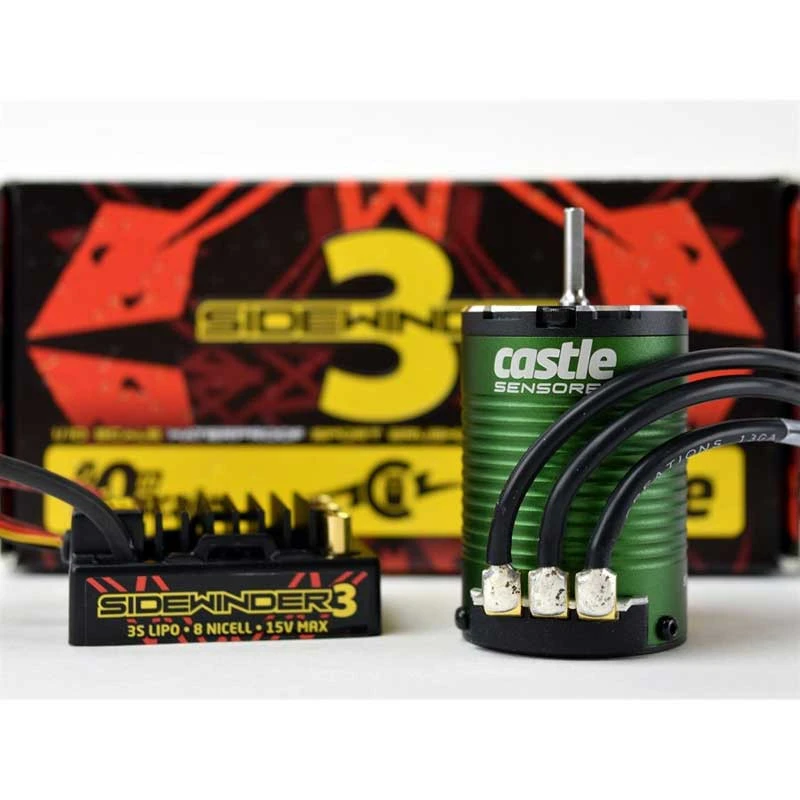 This combo includes a Sidewinder 3 ESC and 1406-4600Kv sensored* motor. The 1406-4600kv motor is a great motor for 2WD short course trucks on 2s LiPo and geared conservatively. It makes a great combo for 1/10th 2WD Stadium trucks and buggies on 2s for general bashing and limited runs on 3s; temperatures will climb quickly on 3s. It makes a great upgrade for 1/10th scale on-road cars for 2s and 3s use. NOT for use in 4WD short course trucks.