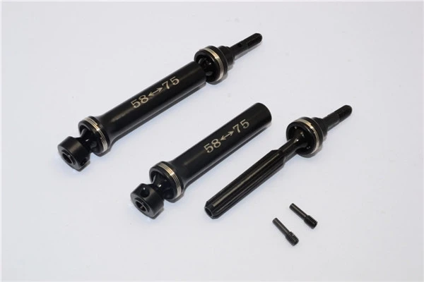These are the GPM Racing Hardened Steel Front or Rear CVD Driveshafts for Traxxas 1/16 E-Revo and 1/16 Summit trucks. Each pack includes two complete driveshafts and two screw pins. Made of hardened #45 steel, these shafts are incredibly durable and ready for just about anything you can throw at them.