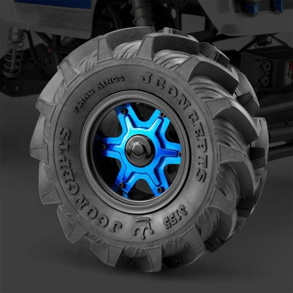 The goal of scale size was achieved and built around a 2.6” mounting bead diameter. The width was matched to line-up perfectly with the Fling King tires and the constraints of the wheel was underway. Like other monster wheels by JConcepts, a bolt-in hub adapter was created to match a huge variety of trucks while also offering different overall widths to choose from. The bead of the wheel features a 3 step surface which provides a massive amount of area for glue to rest giving the utmost security for full-throttle mud runs.