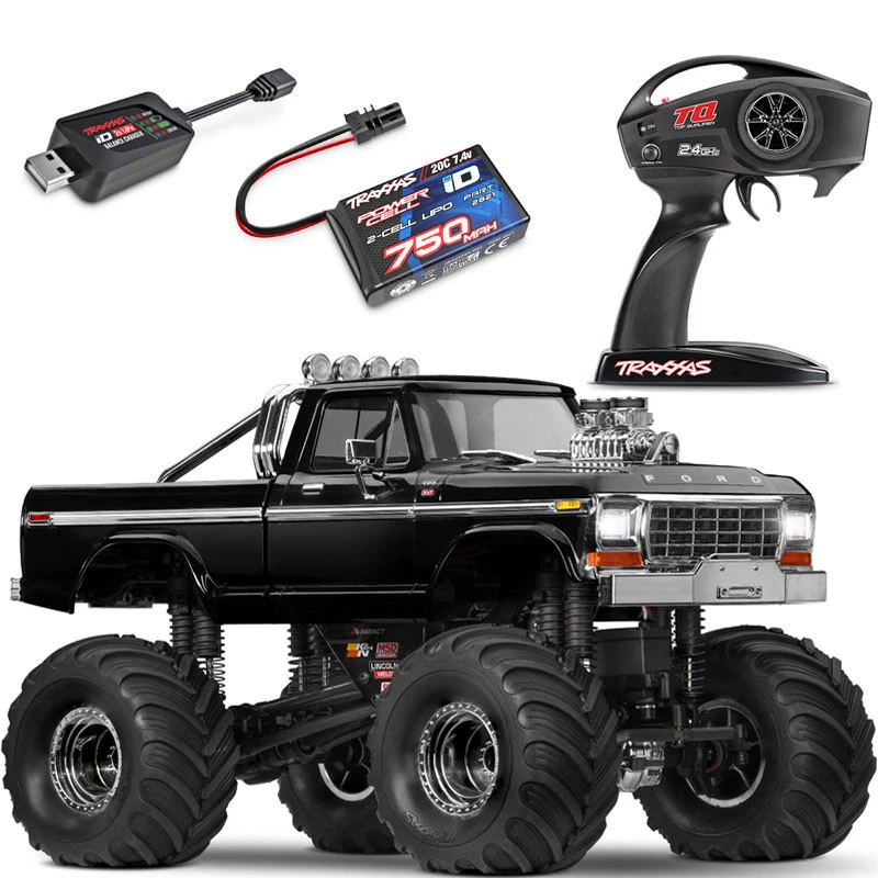 Traxxas took great care to replicate classic Ford and Chevrolet monster trucks in 1/18 scale. Unique chrome bumpers and engine details, roll bars with replica lights, side mirrors, door handles, and even wipers are molded in exacting detail for exceptional scale realism.