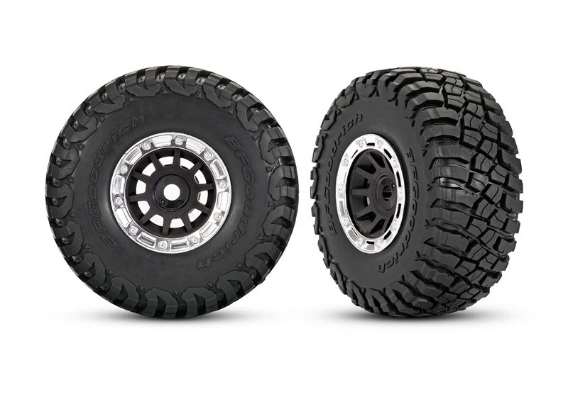 This is the Traxxas 1.4″ Black and Chrome Wheels with BFG Mud-Terrain Tires (2)