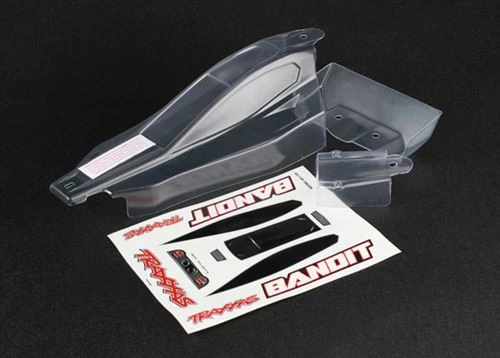 This is the Traxxas Bandit Replacement Body Set (front & rear) with window, lights, and grill decal sheet. This will work on the Bandit XL-5 and Bandit VXL buggies.