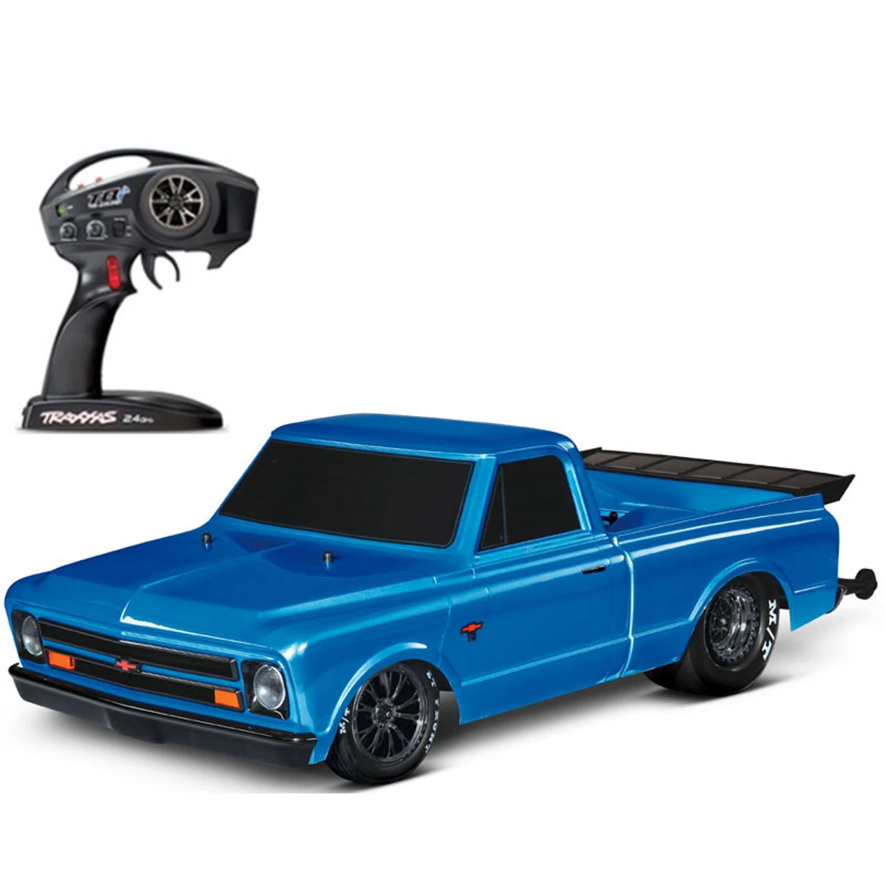 This is the Traxxas Drag Slash 1/10 2WD Brushless Chevy C10 Drag Racing Truck. The truck comes equipped with the VXL-3s electronic speed control, Velineon 3500Kv motor, Pro-Series Mangum 272R transmission and TQi 2.4GHz radio system. Battery and charger are sold separately.