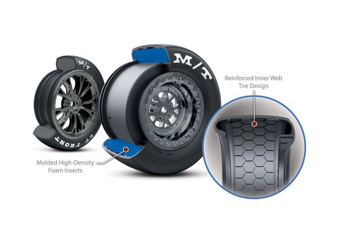 Scale realism meets engineered performance. Ultra-wide Mickey Thompson ET Drag Slicks feature an innovative carcass design and molded high-density foam inserts for massive traction off the line and down the track