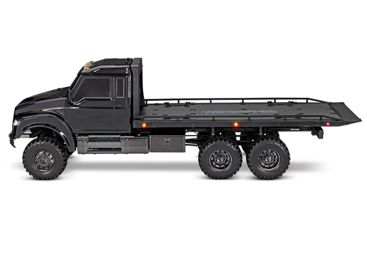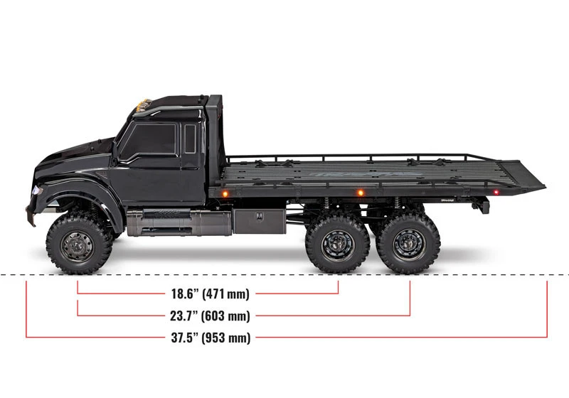 The Ultimate RC Hauler is the largest TRX-6 model with an extra long 23.7″ (603mm) wheelbase and oversize bed to haul your 4-Tec models in style. The highly detailed truck features deep gloss black paint over molded black chrome body accessories for an intimidating look to match its big rig attitude.