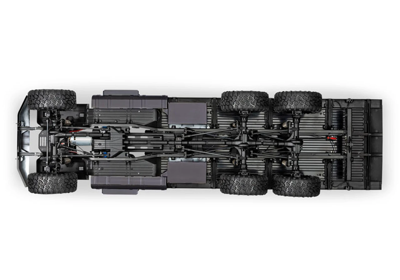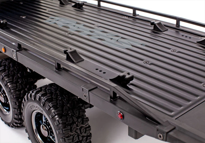 Built on the supremely capable TRX-6 platform, the Ultimate RC Hauler uses six drive wheels to get into the action with trail-conquering grip of three remote-locking T-Lock differentials to get back out. A remote-shifting high/low range transmission amplifies the motor’s torque down low to move heavy loads while still providing ample cruising speed when unloaded.
