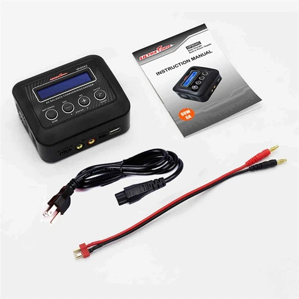 This is the Ultra Power UP60AC 60W Multi-Chemistry AC Charger for LiPo, LiIon, LiFe, LiHV, NiCd, NiMH, an Pb batteries. Ultra Power’s new UP60AC is the ideal upgrade for RTR customers or enthusiasts that desire a powerful yet economical full-functioned charger capable of charging and discharging LiPo, LiIon, LiFe, LiHV, NiCd, NiMH and Pb (lead acid) battery chemistries. The 60-watt output provides an adjustable charge rate from 0.1-6A, and will charge a 4S LiPo at 4A. An additional convenience feature is the included 2.1A USB port for charging phones, tablets, or other devices.
